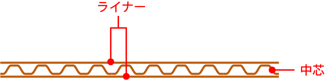 段ボールの基本構造は、波型に成型した「中芯」と、その中芯に貼り合わされた「ライナー」と呼ばれる原紙から出来ています。