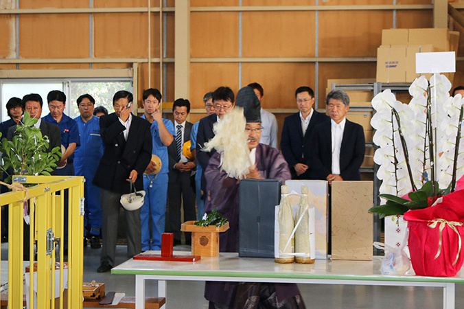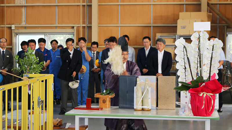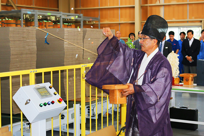 平成29年8月21日、新しく導入した製函機「EVOL」の起動式を執り行いました。